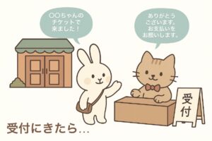 ②受付スタッフに〇〇(在籍生徒名)の名前でチケットを押さえてる旨を伝えください。